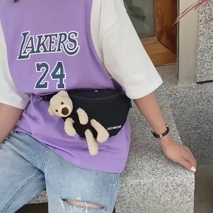 Product Name: New Cute Plush Teddy Bear Chest Bag, Women's Canvas Crossbody Bag