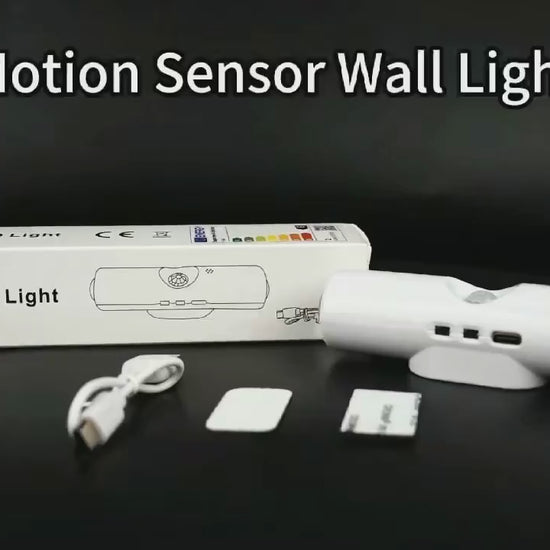 - Motion-activated LED wall lights powered by rechargeable USB battery.